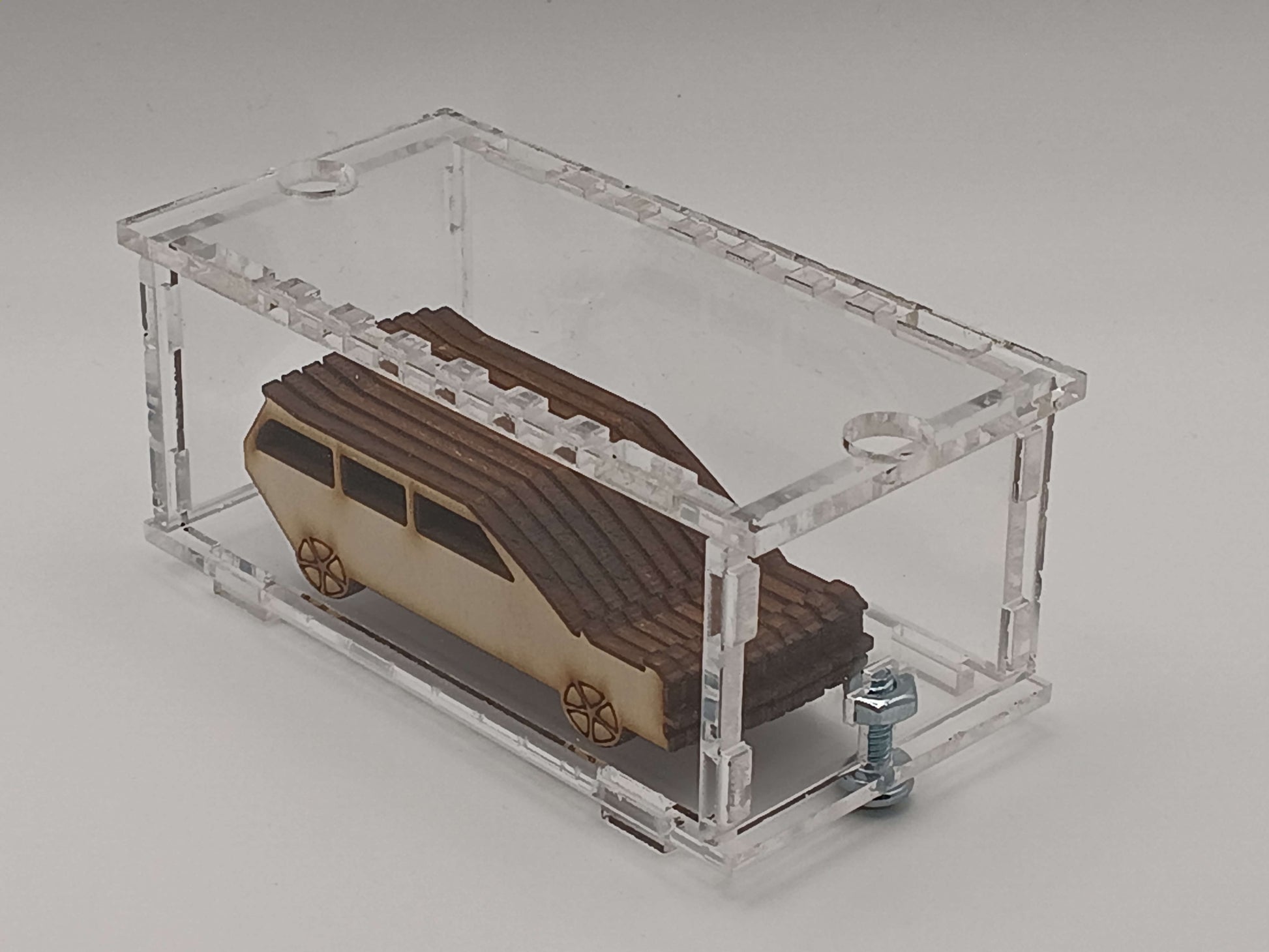 A protective case for cars or miniature toys and figures that is easy to assemble and adds a modern touch to any collection.
