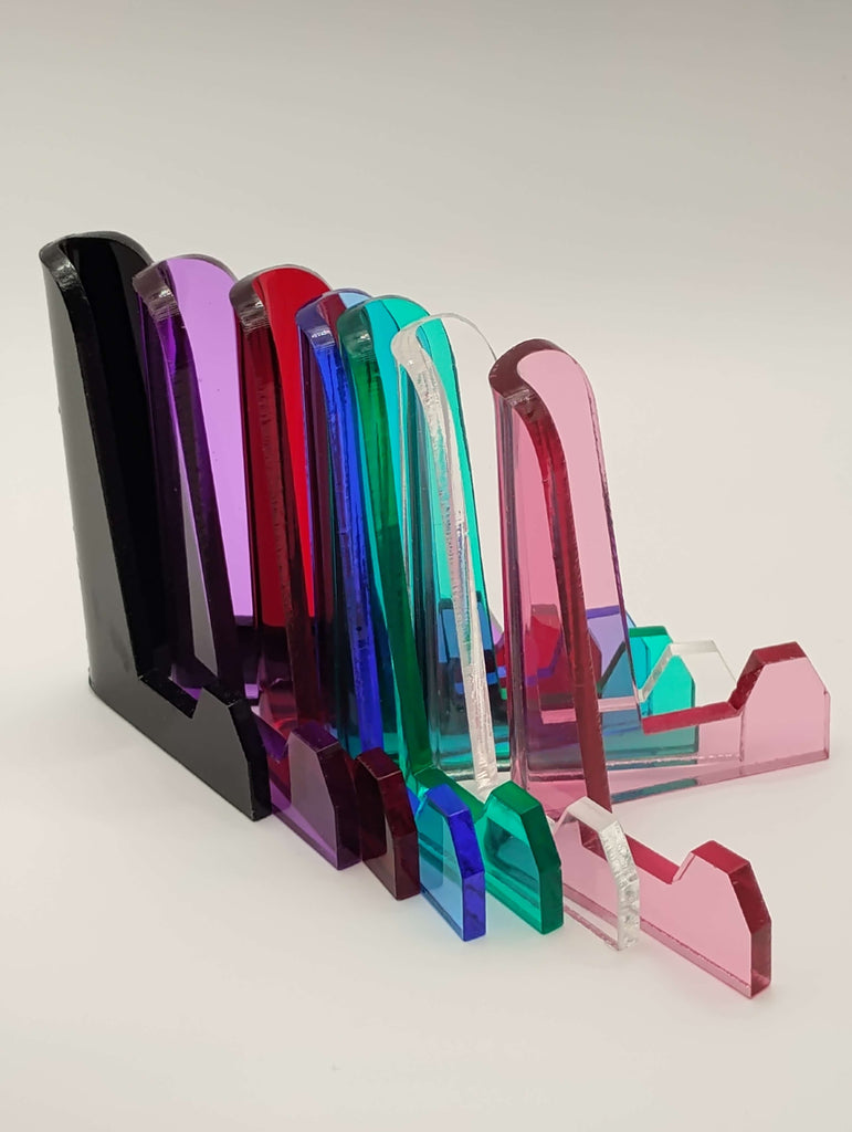 An acrylic stand for cards or photos that provides a balance platform for any token an adds a stylish touch to any room. With many colors to choose from there sure has to be one for you