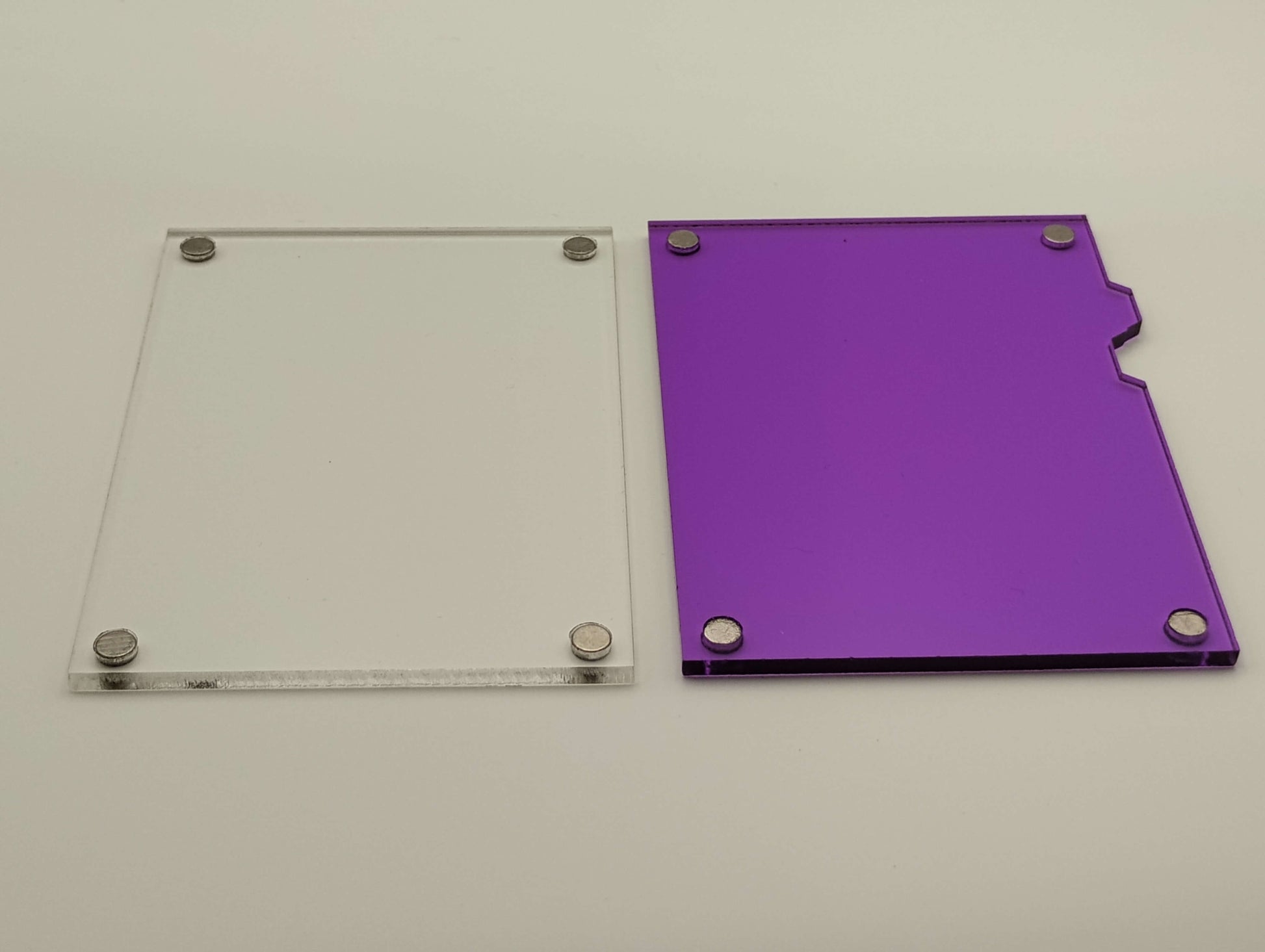 - 1-piece purple acrylic and 1-piece clear acrylic